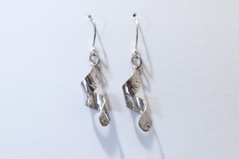 Sterling silver twisted earrings with “TinyShiny” brand stamp.