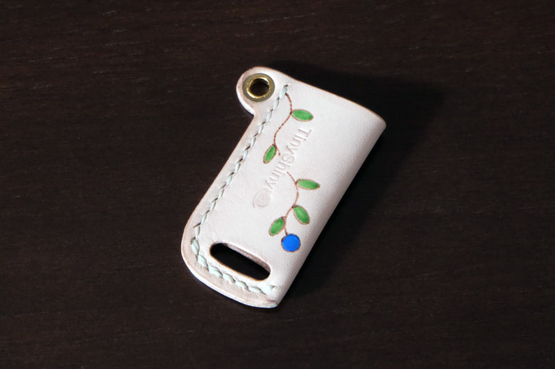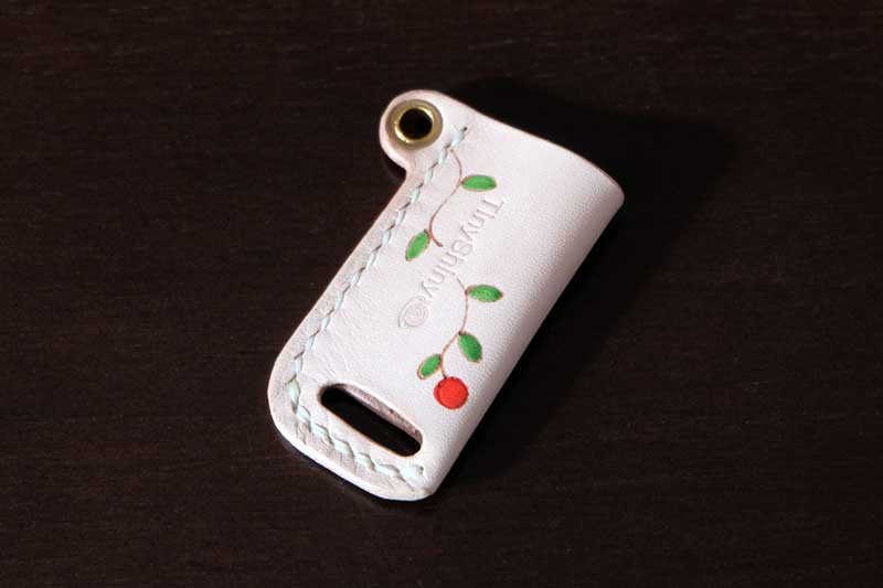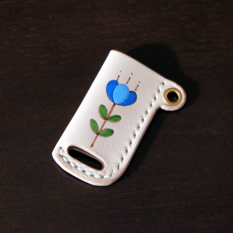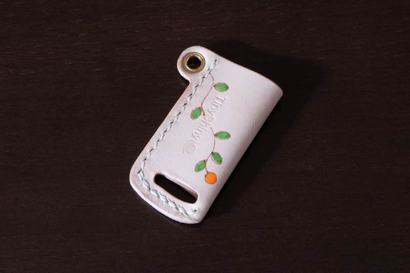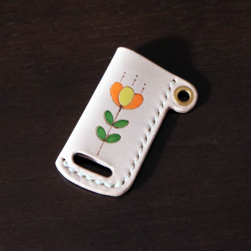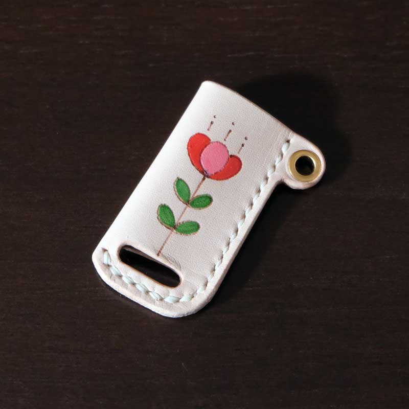Leather Lip Balm Case with hand painted flower design. Size: 50mm x 30mm.