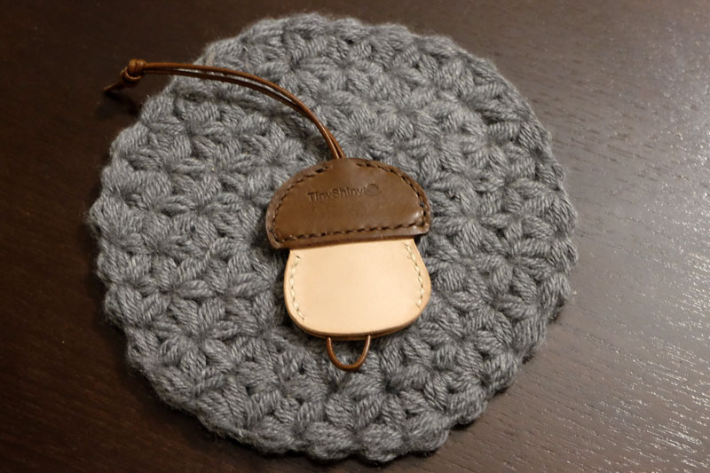 Two-tone Mushroom shaped key holder. Beige and brown leather. Comes with a leather lanyard to hold your key.